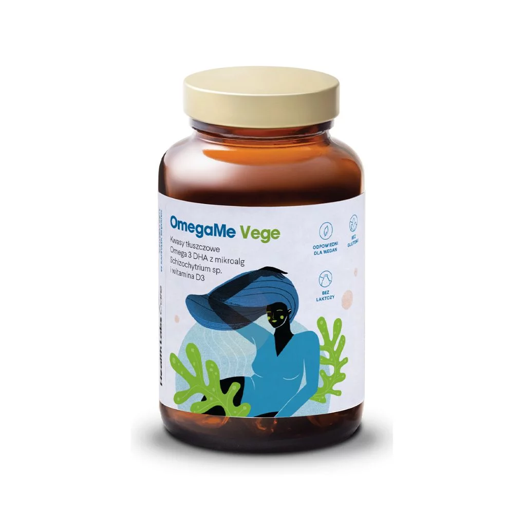 OmegaMe Vege to innowacyjny suplement diety zawierający 510 mg DHA z mikroalg Schizochytrium sp. oraz 2000 IU witaminy D3 w każdej kapsułce. To idealne rozwiązanie dla wegan i wegetarian, którzy chcą wspierać prawidłową pracę mózgu, wzrok oraz odporność. Dzięki wygodnej formie miękkiej kapsułki produkt jest łatwy do połknięcia i nie pozostawia rybiego posmaku. DHA i witamina D3 pozyskane z alg stanowią doskonałą alternatywę dla tradycyjnych źródeł tych składników. Jedna kapsułka dziennie wystarczy, by dostarczyć organizmowi kluczowe kwasy tłuszczowe i witaminy wspierające zdrowie.